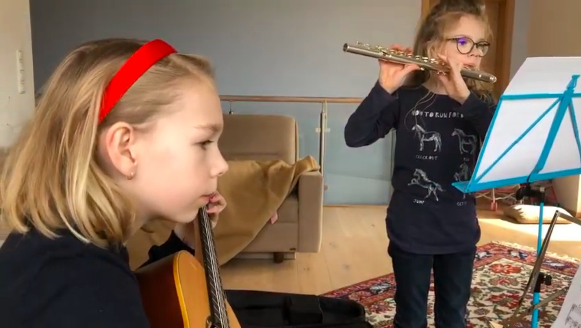 Emma (Gitarre) und Selma (Querflöte) Hann spielen „Originaltänze für Flöte und Gitarre" von Franz Schubert: